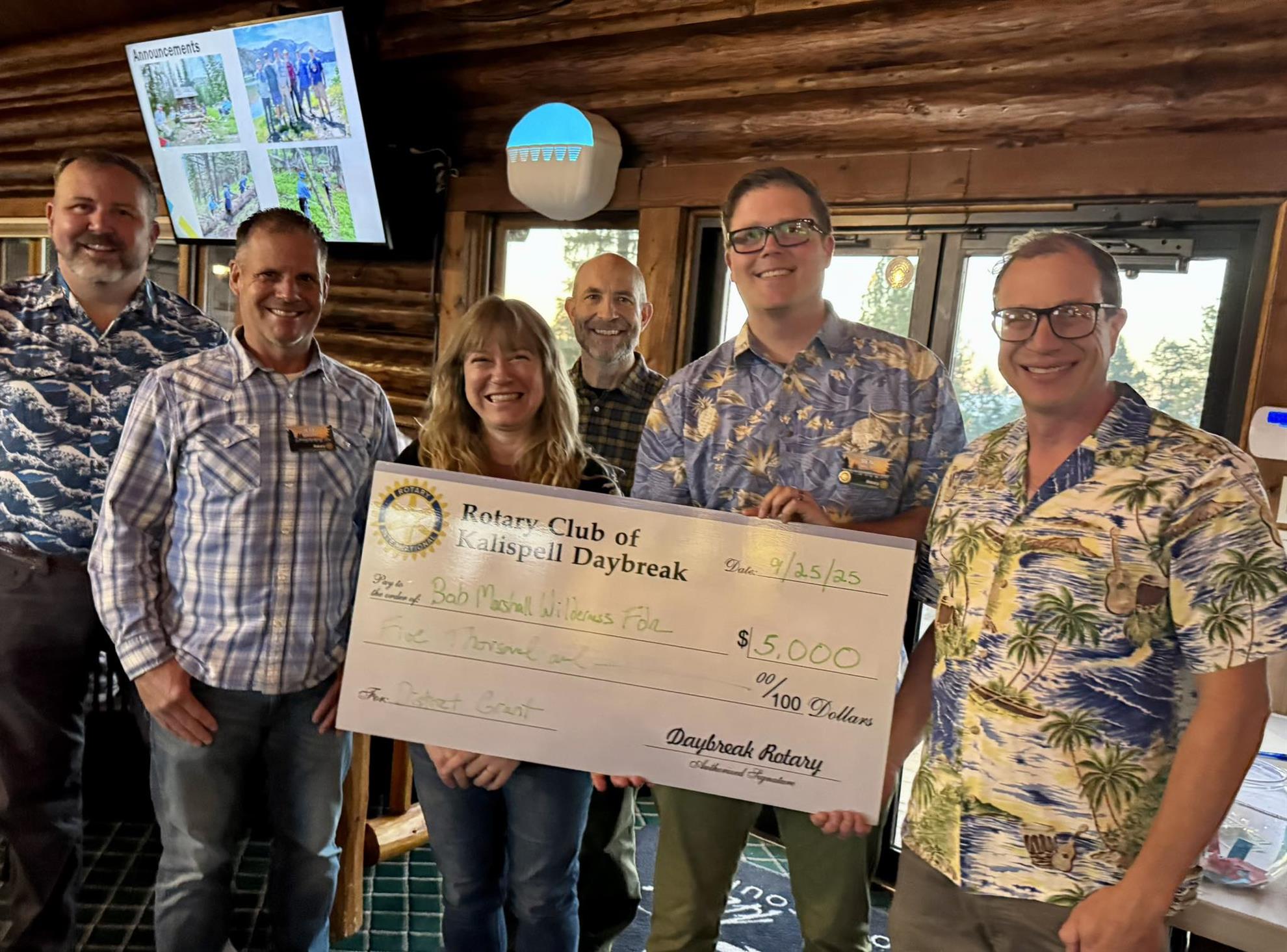 Staff from the Bob Marshall Wilderness Foundation joined us for our weekly meeting on September 25th to receive their check for our 2025 District Grant Project. Members of Kalispell Daybreak Rotary joined the BMWF for a 5 day trail clearing project in July working on trails near Shaw Cabin.